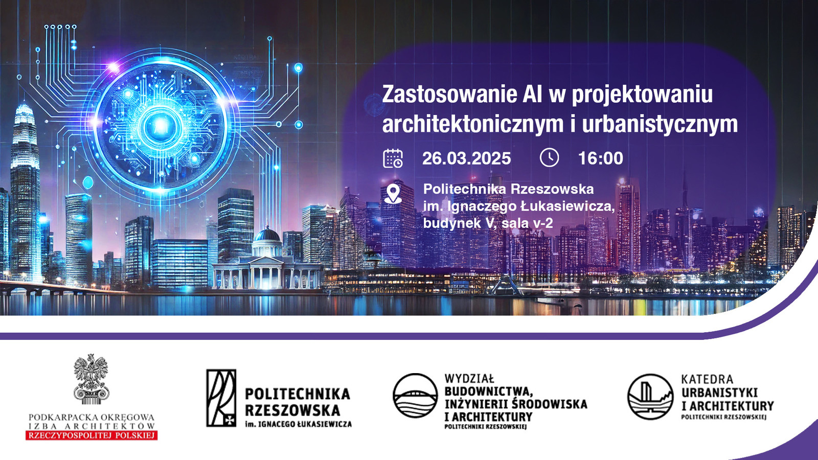Katedra Urbanistyki i Architektury Politechniki Rzeszowskiej wraz z Podkarpacką Okręgową Izbą Architektów Rzeczpospolitej Polskiej zapraszają na wykład szkoleniowy "Zastosowanie AI w projektowaniu architektonicznym i urbanistycznym".