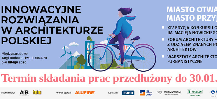 „MIASTO OTWARTE, MIASTO PRZYJAZNE” - INNOWACYJNE ROZWIĄZANIA W ARCHITEKTURZE POLSKIEJ - TERMIN SKŁADANIA PRAC PRZEDŁUŻONY DO 30.01.2020