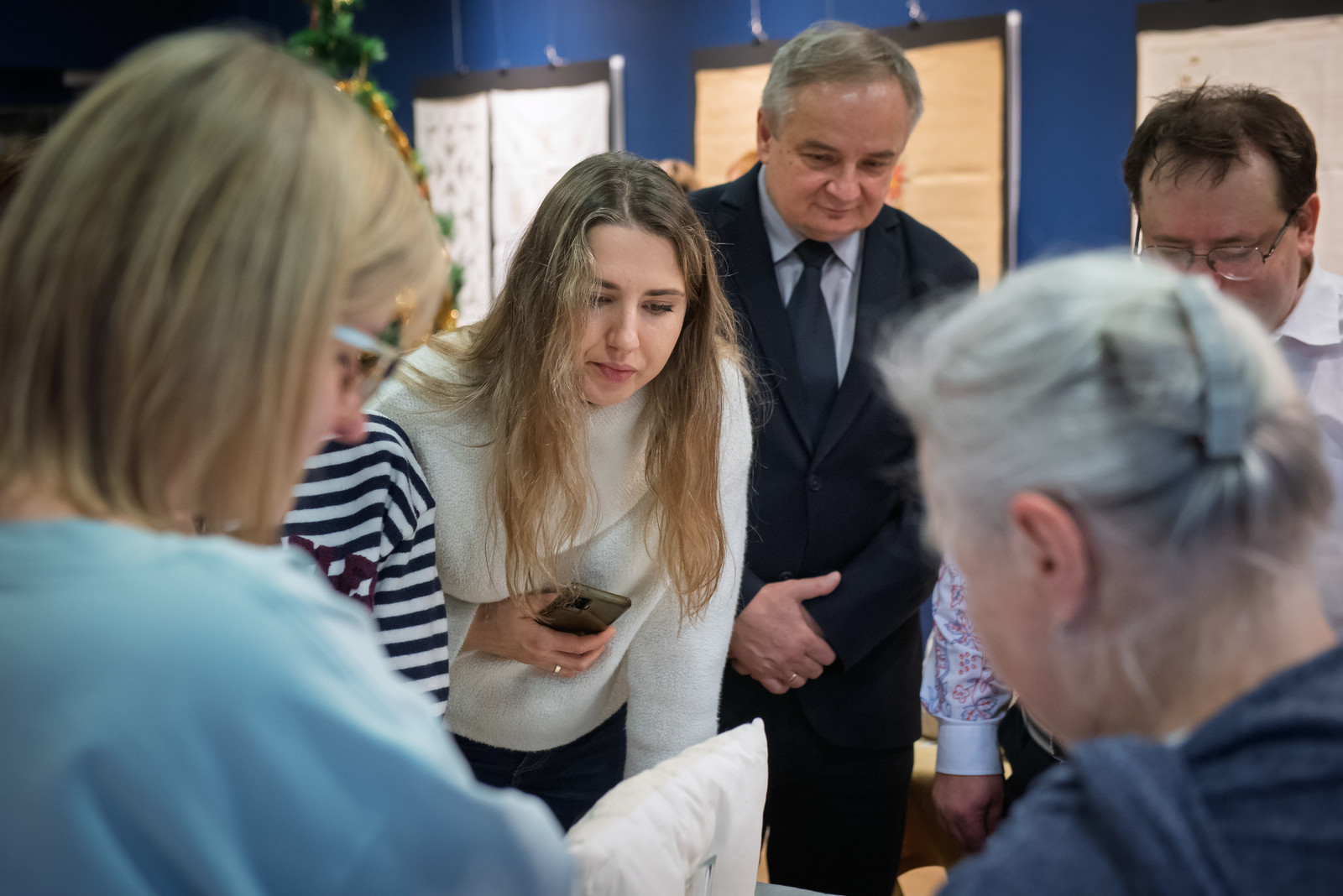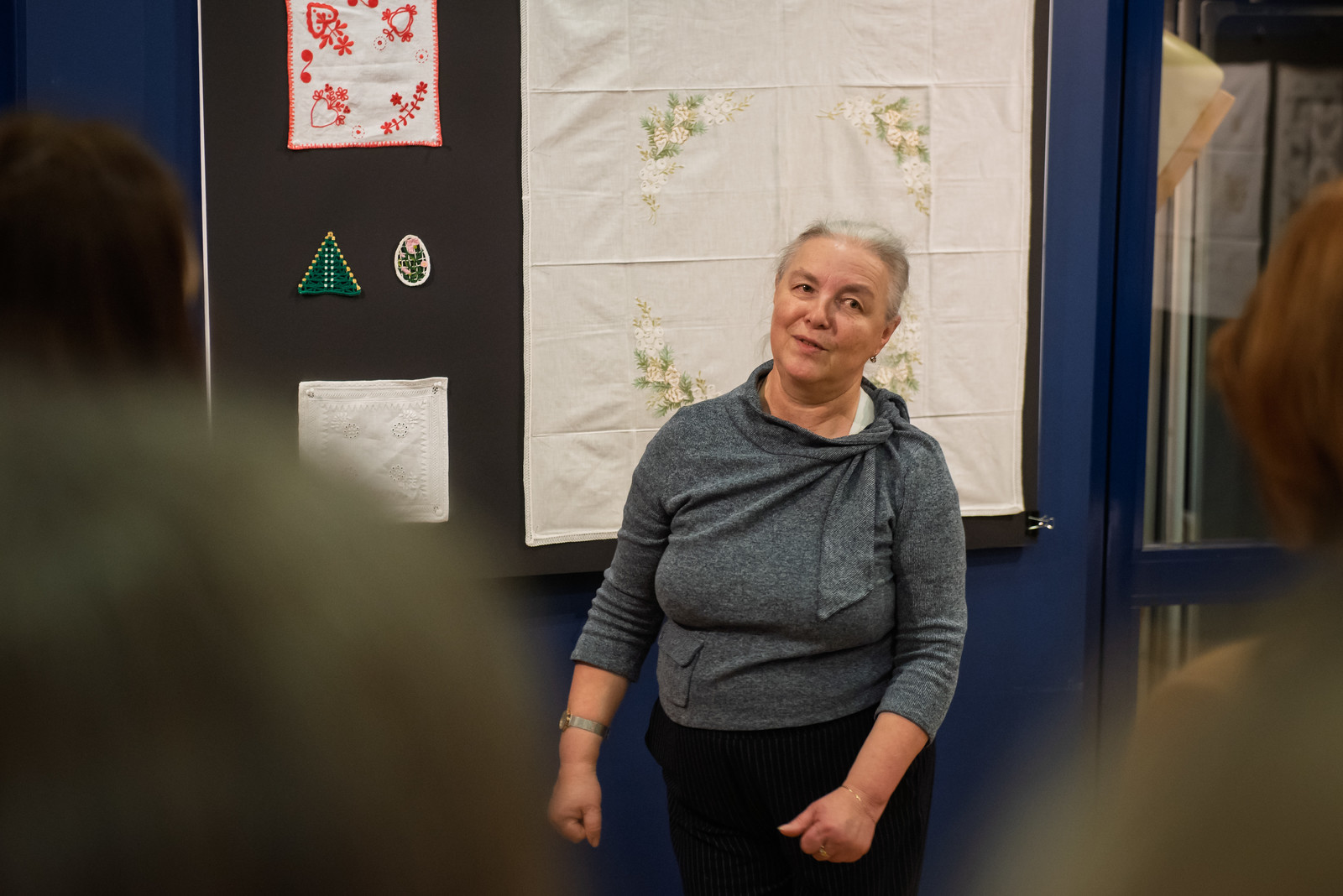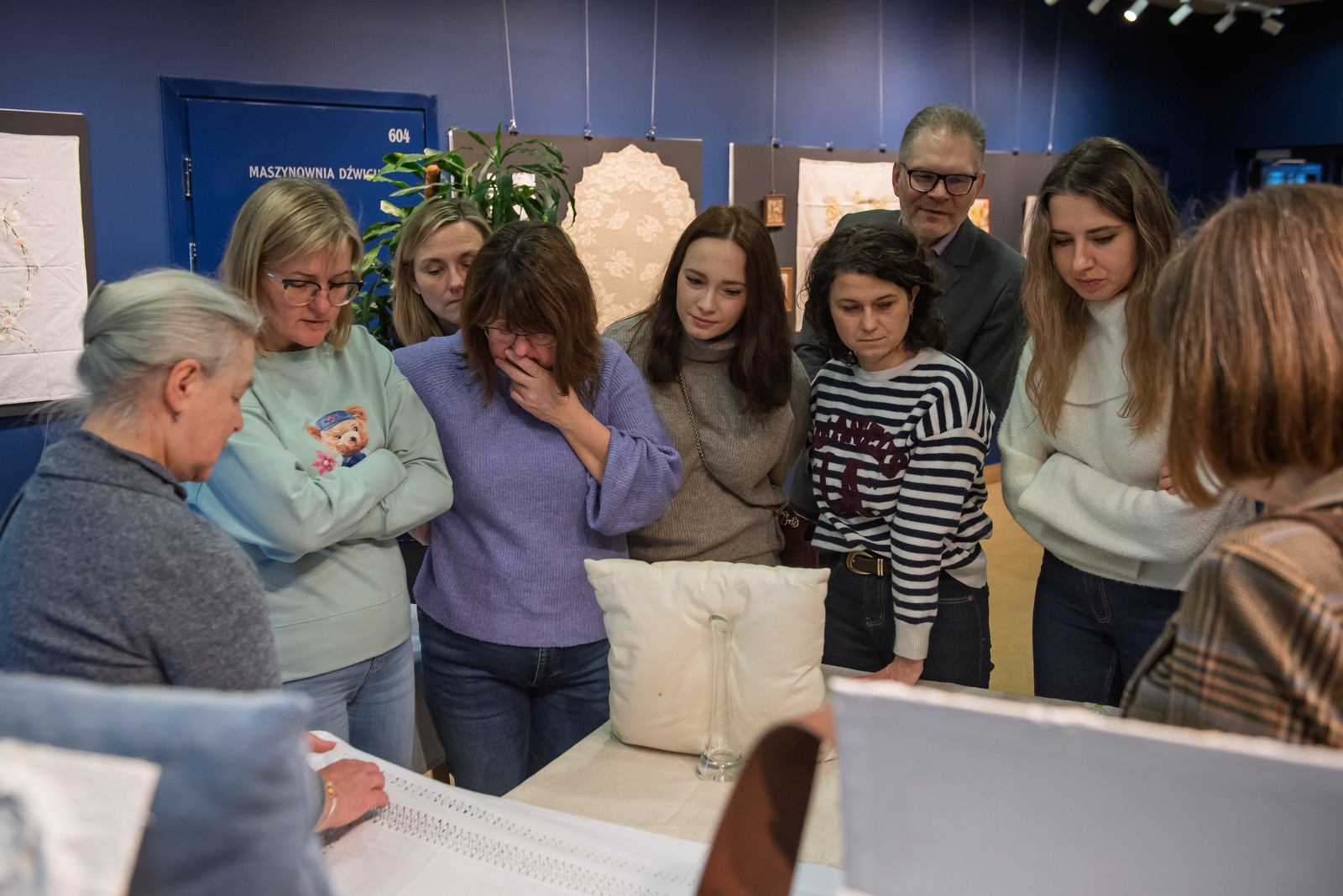 Podczas wydarzenia Pani Agata tłumaczyła zgromadzonym techniki haftu, które zastosowała w swoich pracach, dzieląc się zarówno wiedzą, jak i praktycznymi wskazówkami. Wystawa pozwoliła nie tylko na podziwianie kunsztu, ale również na inspirującą wymianę doświadczeń wśród miłośników hafciarstwa, pokazując, że pasja i precyzja rękodzieła mogą współistnieć z działalnością naukową i techniczną.